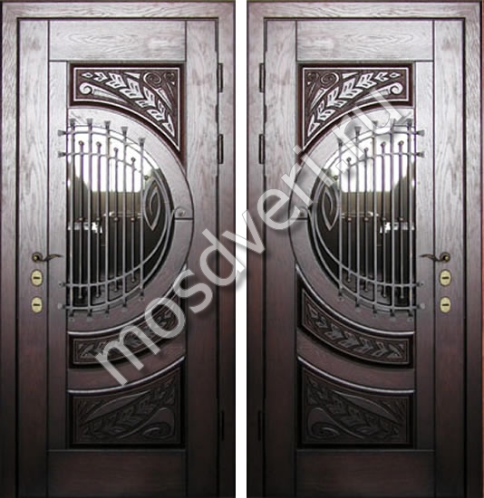 Элитная дверь с отделкой виноритом со стеклом и художественной ковкой в Новосибирске